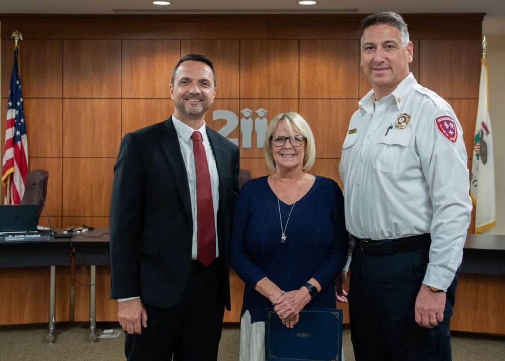 Podczas ostatniego posiedzenia Rady Oświatowej Okręgu 211 szkół średnich Palatine-Schaumburg, komendant straży pożarnej w Schaumburgu, Fabio Puccini, wręczył McNamee specjalne wyróżnienie za ratowanie życia cywilom.