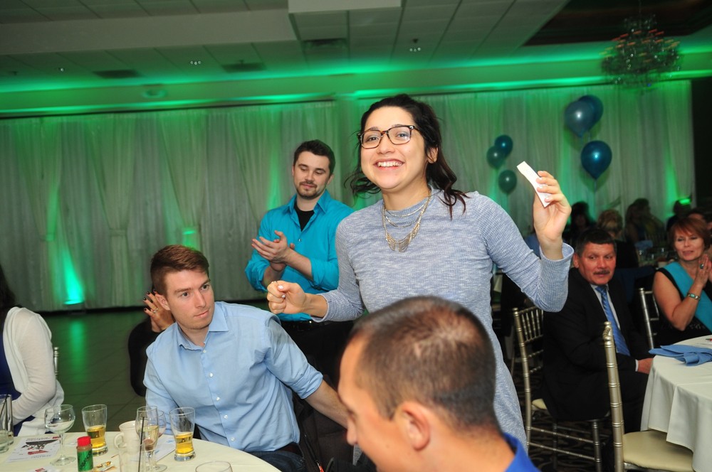 Odbyło się losowanie wielu ciekawych upominków wśród osób, które zakupiły bilet wstępu na andrzejkowy wieczór. Punktem kulminacyjnym zabawy był wybór najbardziej ubranej na niebiesko pary wieczoru.