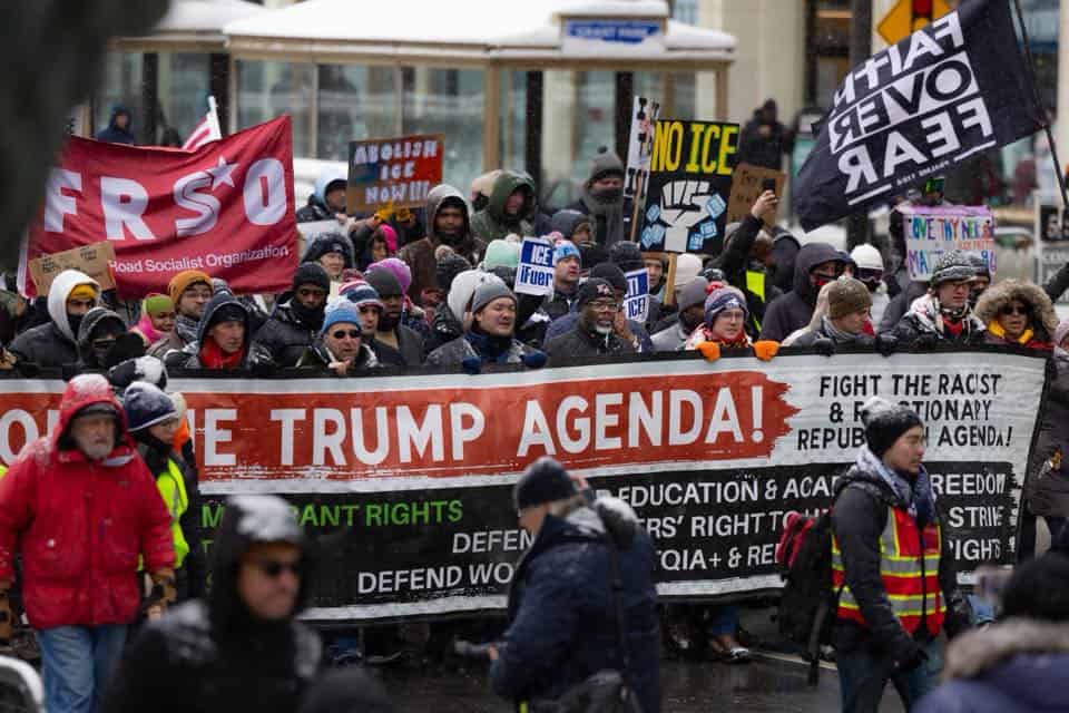 Mimo siarczystego mrozu, śniegu i jednocyfrowych temperatur odczuwalnych, tysiące osób przemaszerowały z okolic Ida B. Wells Drive i Michigan Avenue w kierunku Federal Plaza, gdzie odbyła się kolejna demonstracja.