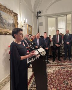 Podsekretarz Stanu podkreśliła również znaczenie polityki odznaczeniowej Prezydenta RP, jako wyrazu wdzięczności i uznania dla zasług Polonii w utrwalaniu pamięci historycznej, promocji kultur i budowaniu wspólnoty narodowej, która realizowana jest przez Biuro Odznaczeń i Nominacji nadzorowane przez Panią Minister.