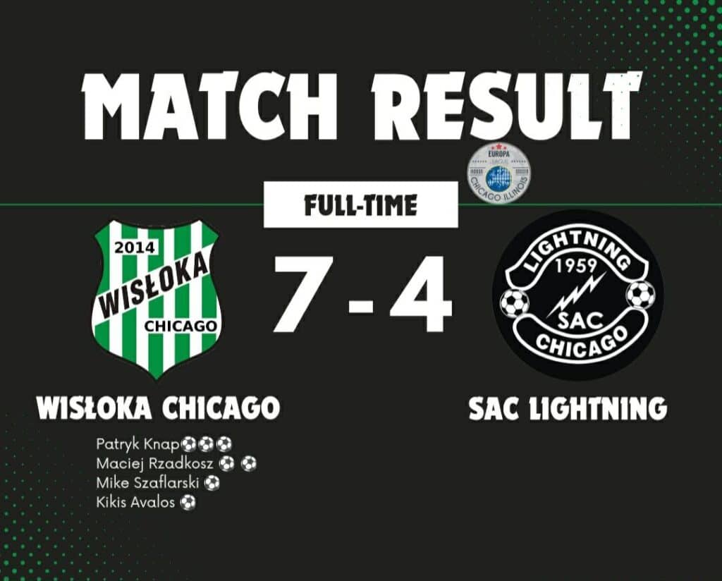 Wisłoka Chicago ma teraz za sobą dwa remisy, z International i Sockers FC, oraz pięć zwycięstw: ze Schwaben AC, Lightning, Czarnymi Jasło, Albanian Stars i United Serbs.