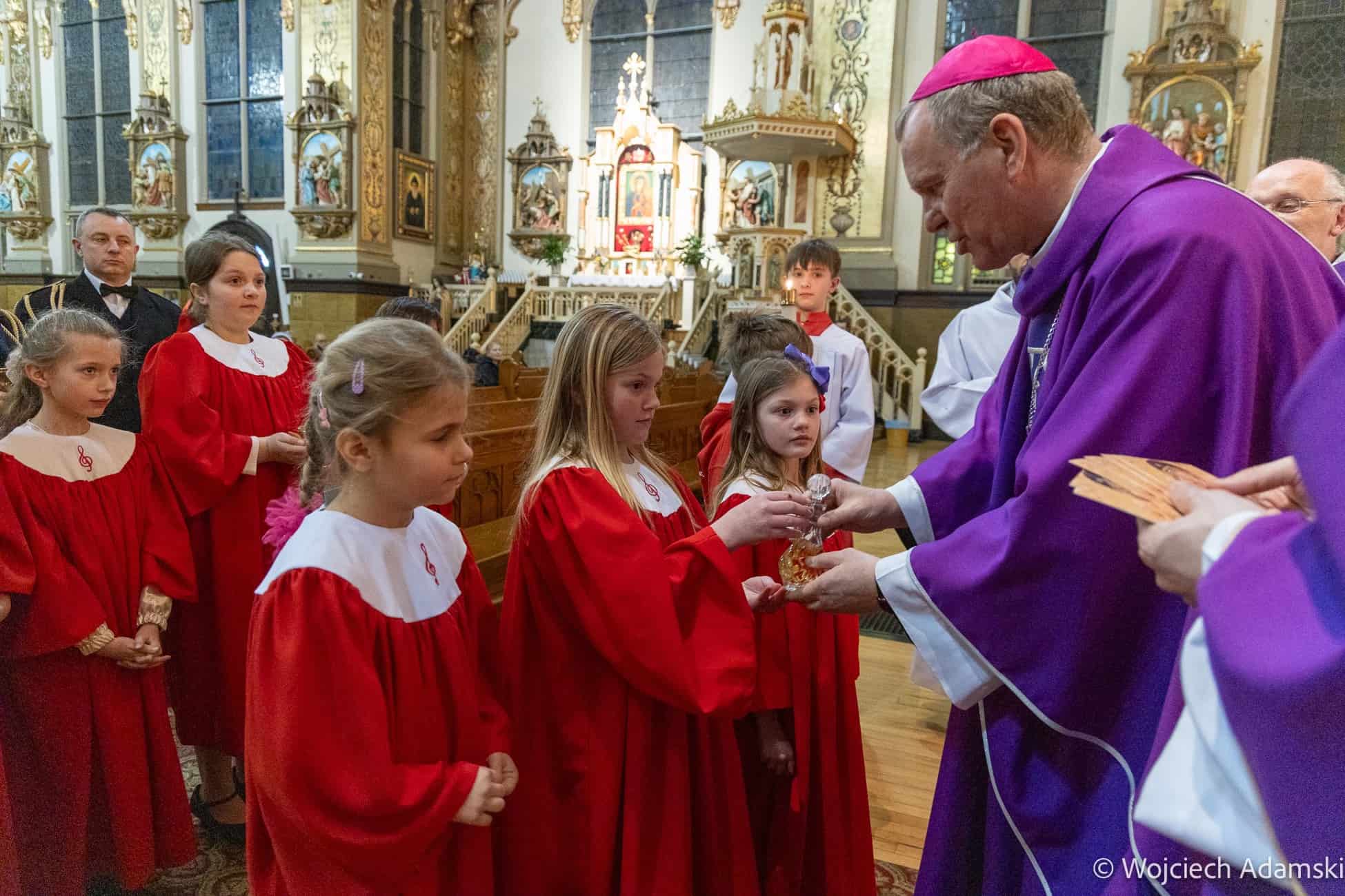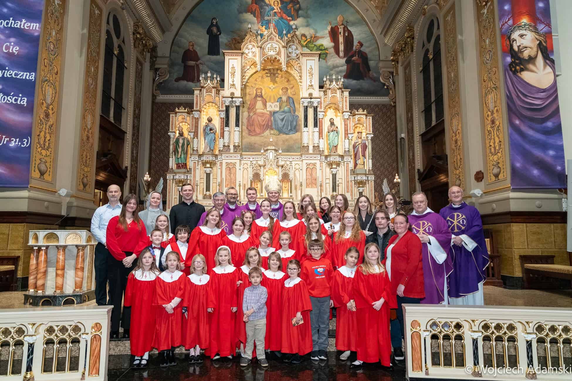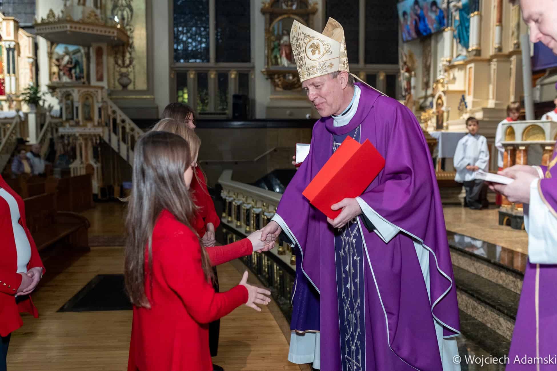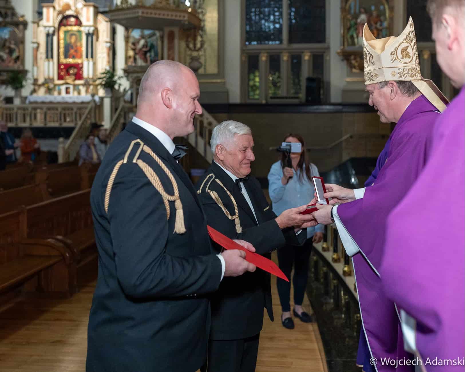 Wręczenie Medalu „Pro Polonia et Ecclesia” Orkiestrze Dętej „Trójcowo” i Scholi „Dzieci Pana Boga” przez Ks. Bp Piotra Turzyńskiego. Fot. Wojciech Adamski