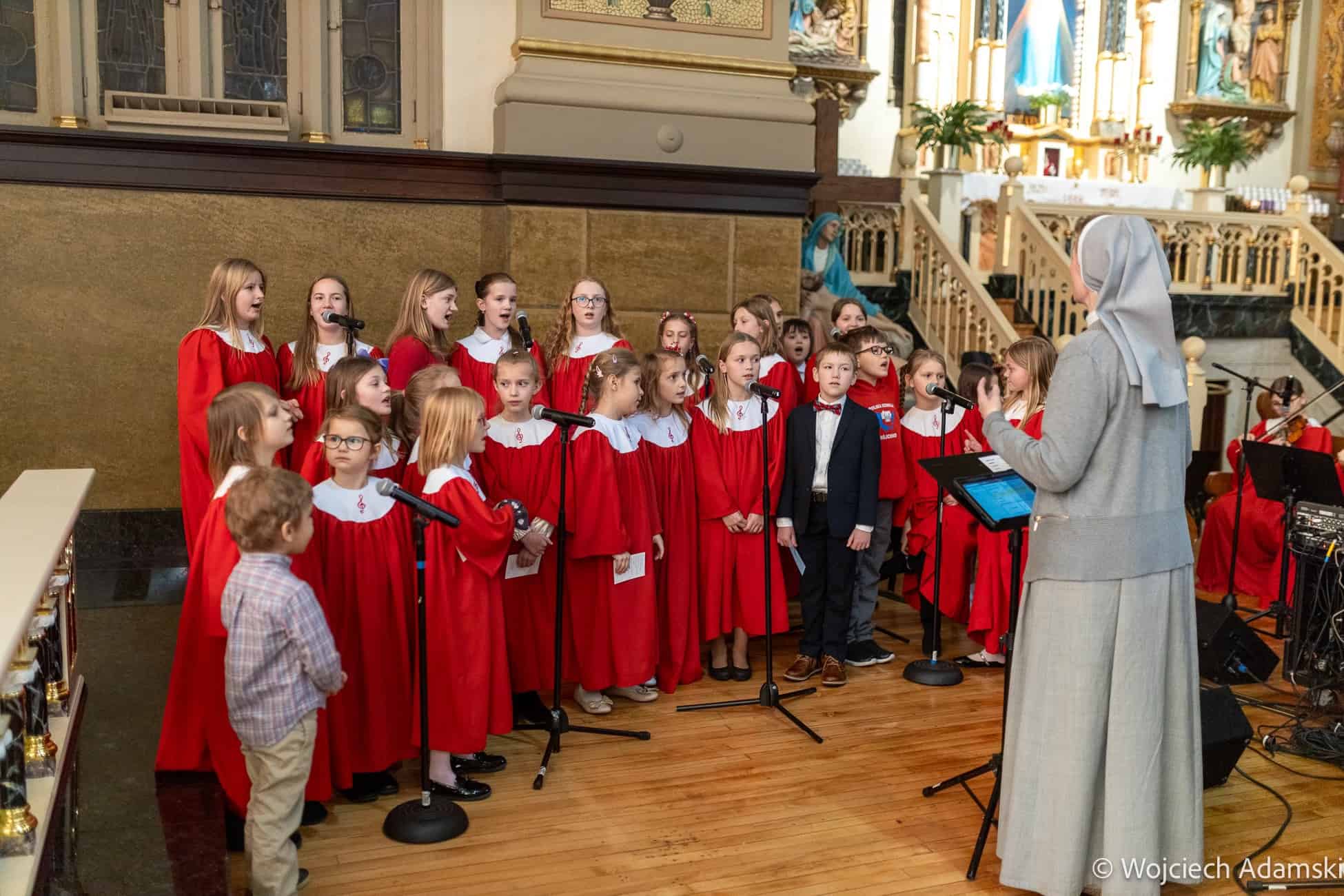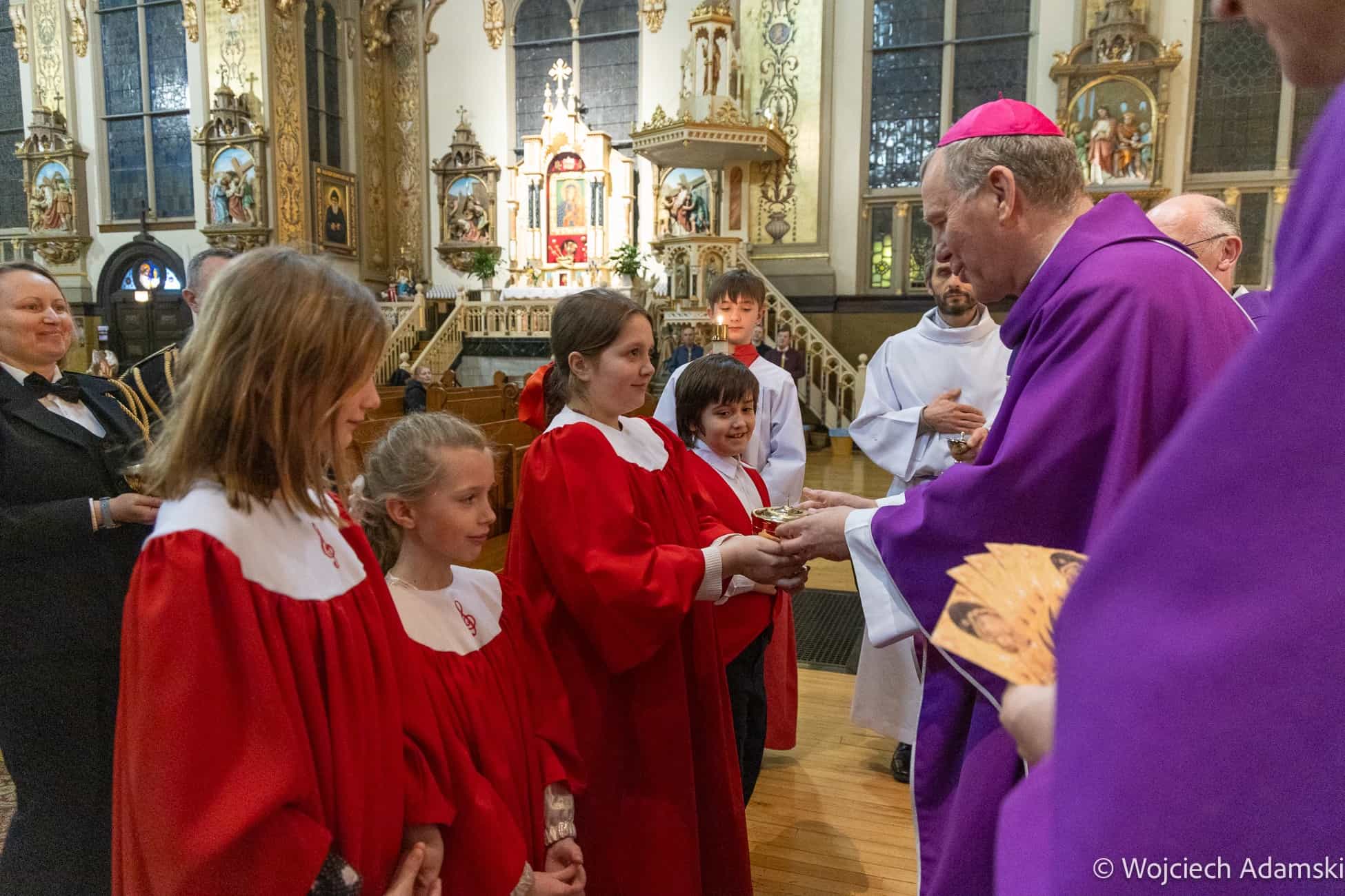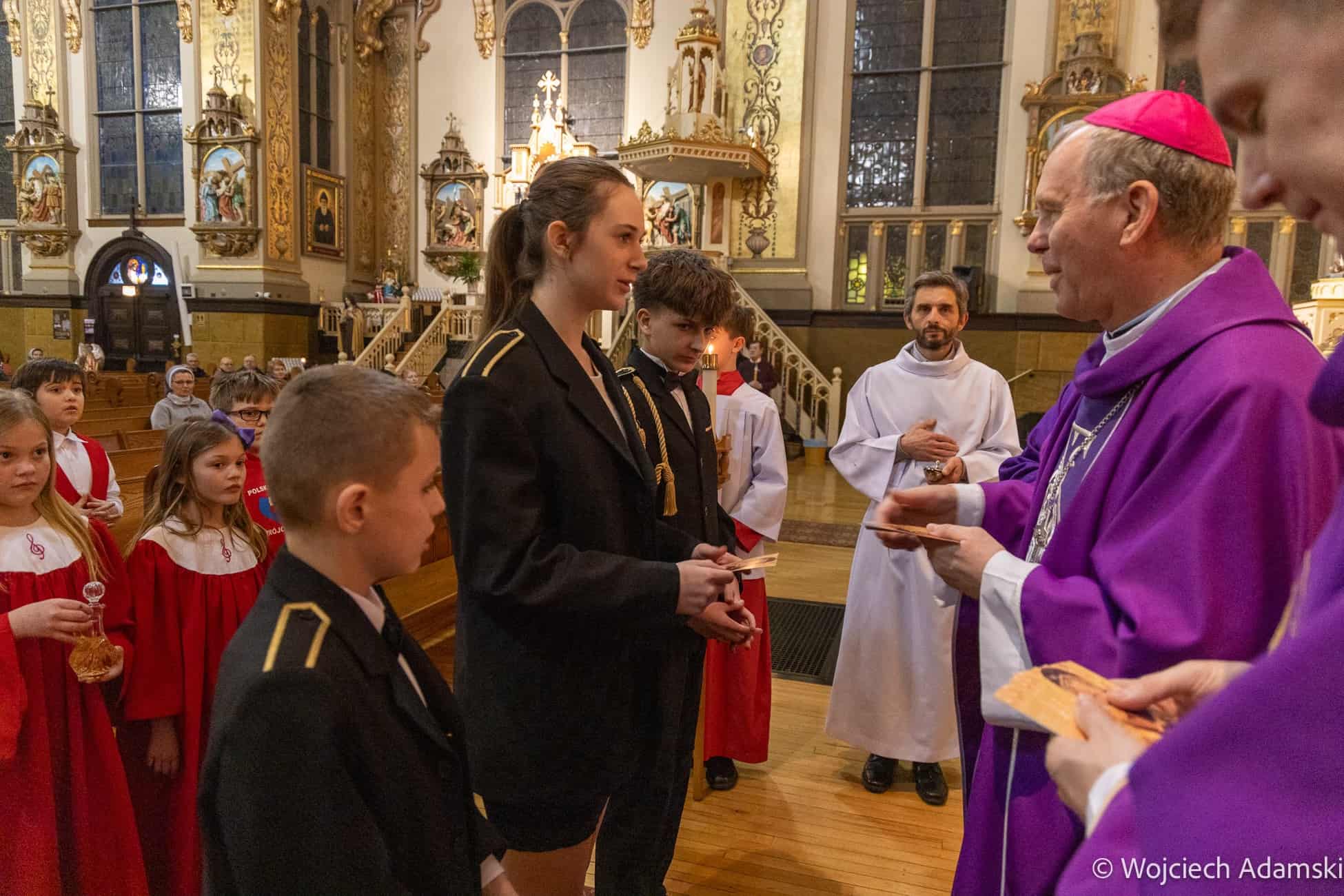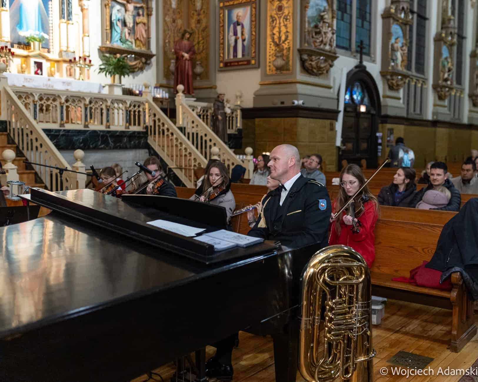 Wręczenie Medalu „Pro Polonia et Ecclesia” Orkiestrze Dętej „Trójcowo” i Scholi „Dzieci Pana Boga” przez Ks. Bp Piotra Turzyńskiego. Fot. Wojciech Adamski