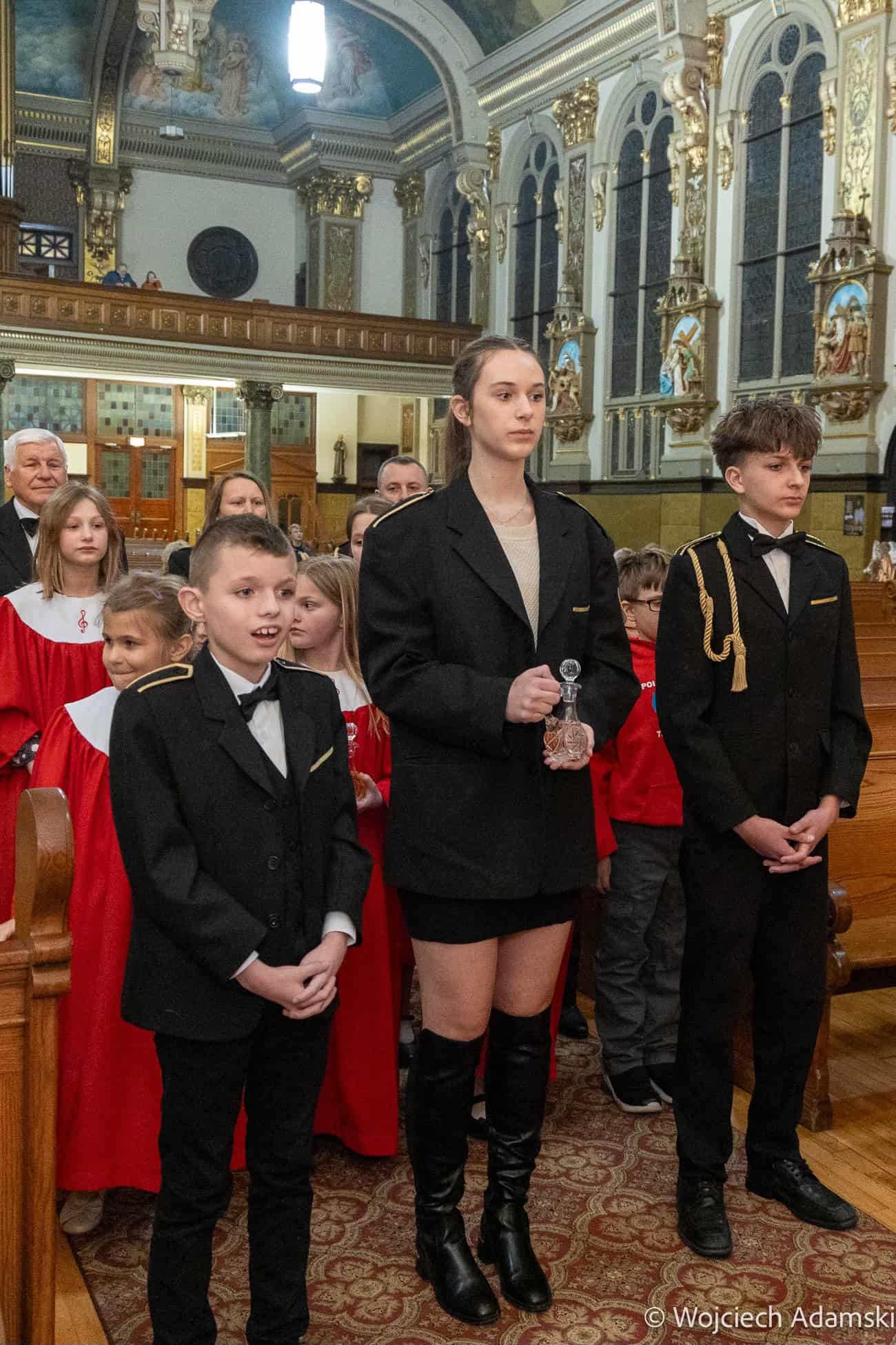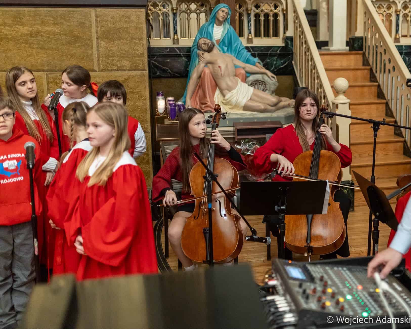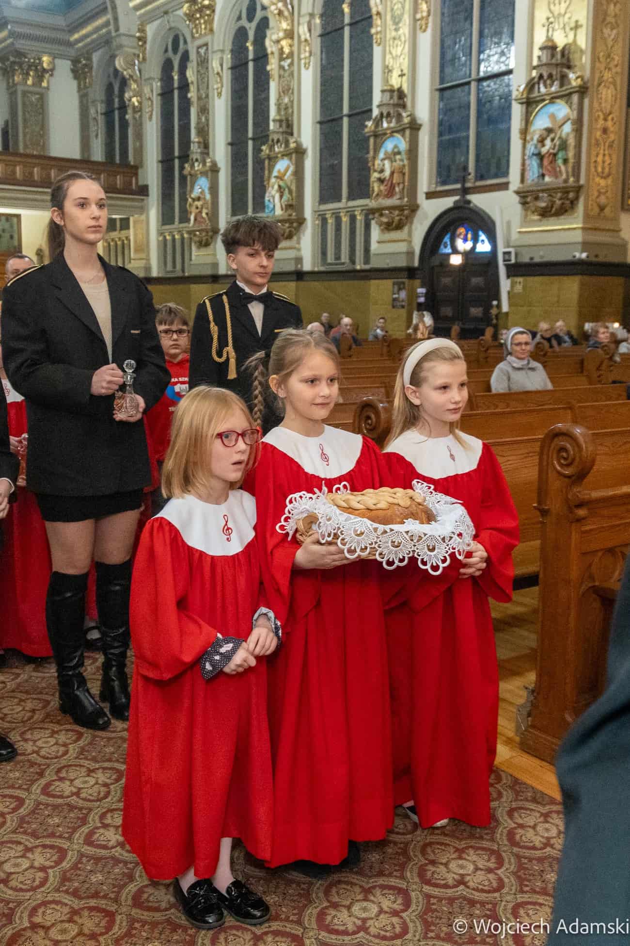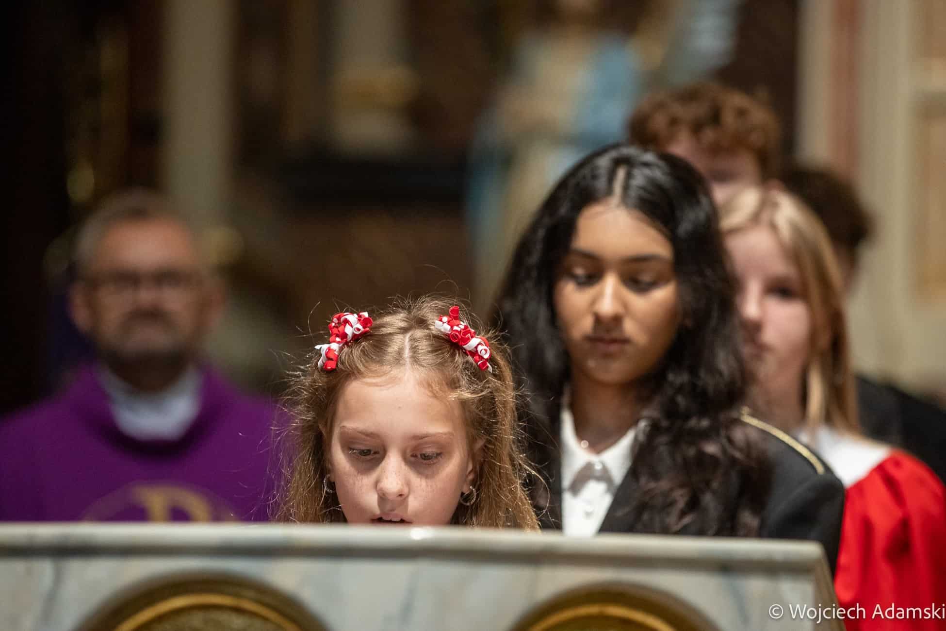 Wręczenie Medalu „Pro Polonia et Ecclesia” Orkiestrze Dętej „Trójcowo” i Scholi „Dzieci Pana Boga” przez Ks. Bp Piotra Turzyńskiego. Fot. Wojciech Adamski