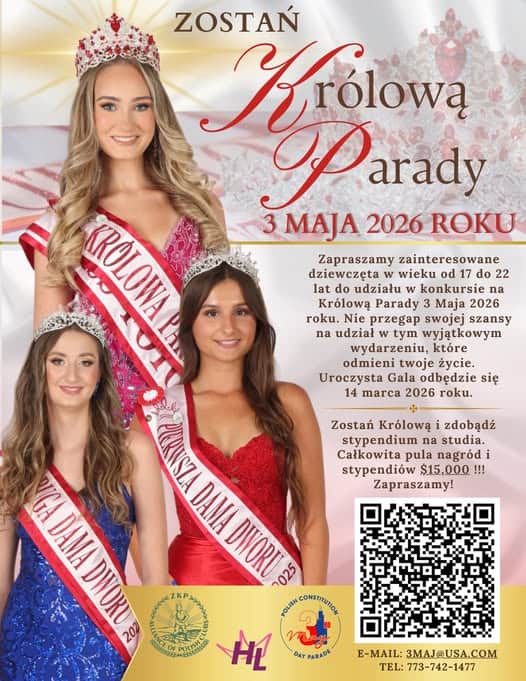 W tegorocznych Wyborach Królowej Parady 3 Maja koronę zdobyła Olivia Kowalczyk. Rolą Królowej oraz jej Dam Dworu jest nie tylko uczestnictwo w Paradzie Dnia Konstytucji 3-Maja w Chicago, ale także pełnienie funkcji reprezentacyjnych podczas polonijnych wydarzeń i uroczystości przez cały rok panowania.