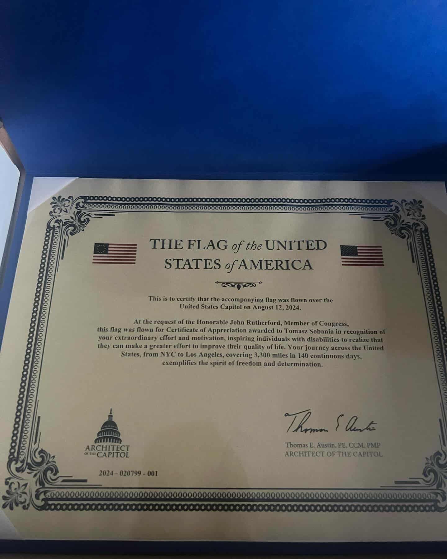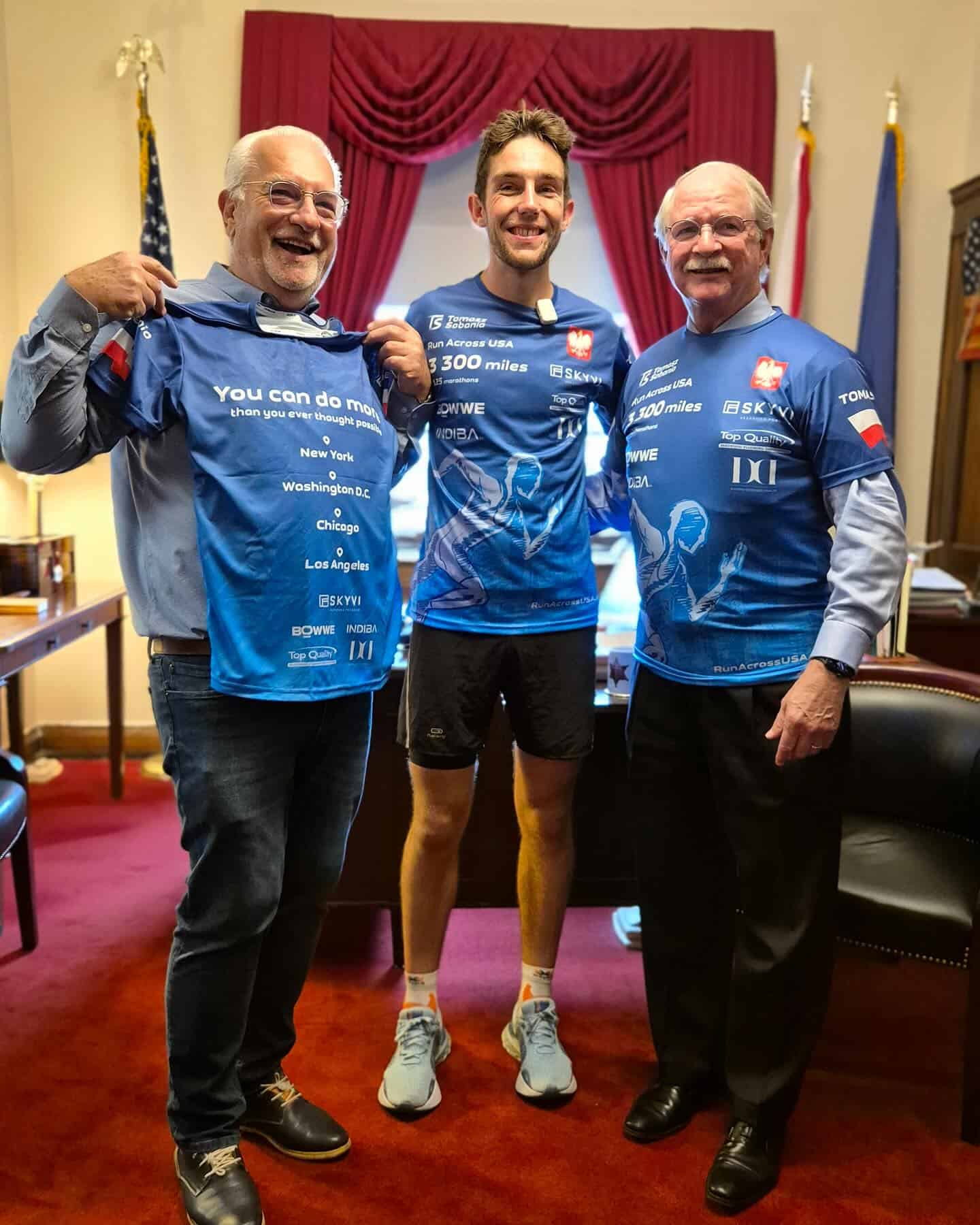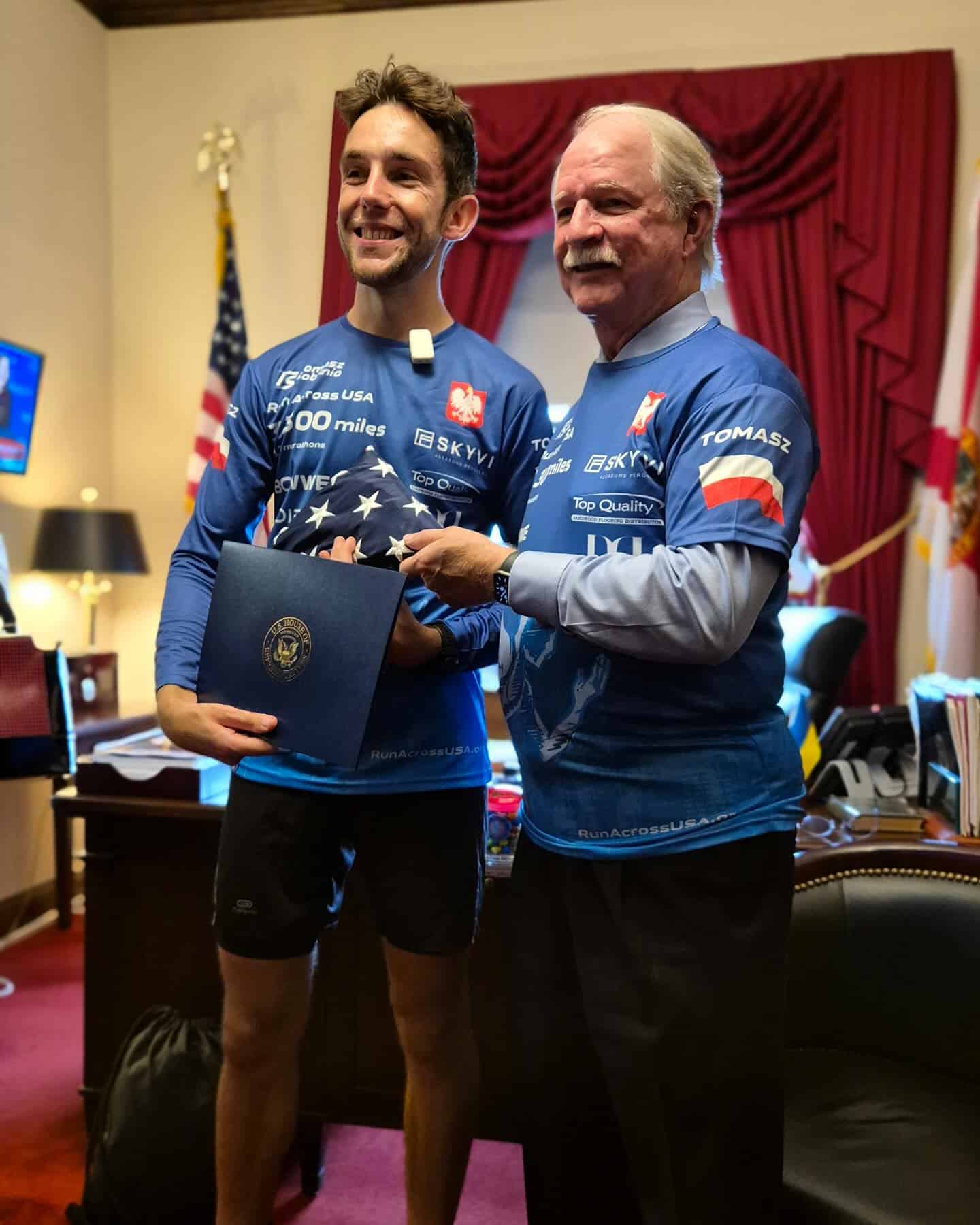 Tomasz Sobania biegnie przez Amerykę: W Waszyngtonie odebrał amerykańską flagę