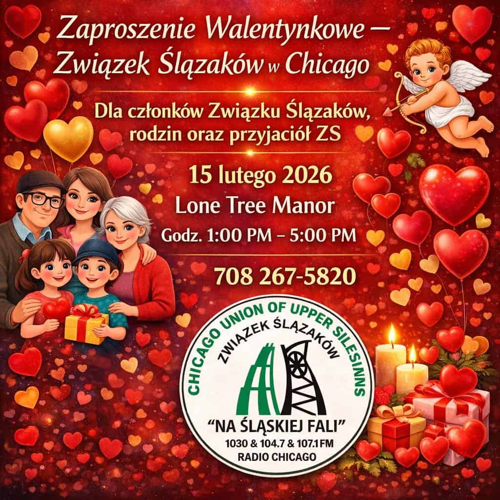 Związek Ślązaków w Chicago zaprasza swoich członków, ich rodziny oraz przyjaciół na wyjątkowe, pełne ciepła i serdeczności spotkanie walentynkowe. Wydarzenie odbędzie się 15 lutego 2026 roku w eleganckich wnętrzach Lone Tree Manor i będzie okazją do wspólnego świętowania w śląskim, rodzinnym klimacie.