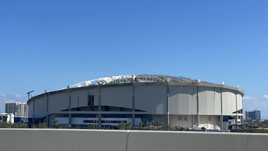 Tropicana Field, otwarty w 1990 roku, był znany ze swojej imponującej, podpartej kopuły z półprzezroczystych paneli z włókna szklanego. Została ona całkowicie zniszczona przez huragan Milton, co wymusiło długotrwałe prace naprawcze.