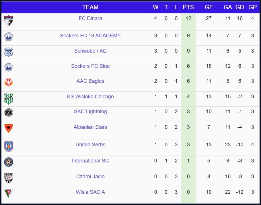 Rozgrywki Europa Soccer League Chicago są zaplanowane do dnia 8 marca, a mecze odbywają się co niedzielę na obiekcie Soccer City Palatine, przy 545 S Consumers Ave, Palatine, IL 60074.