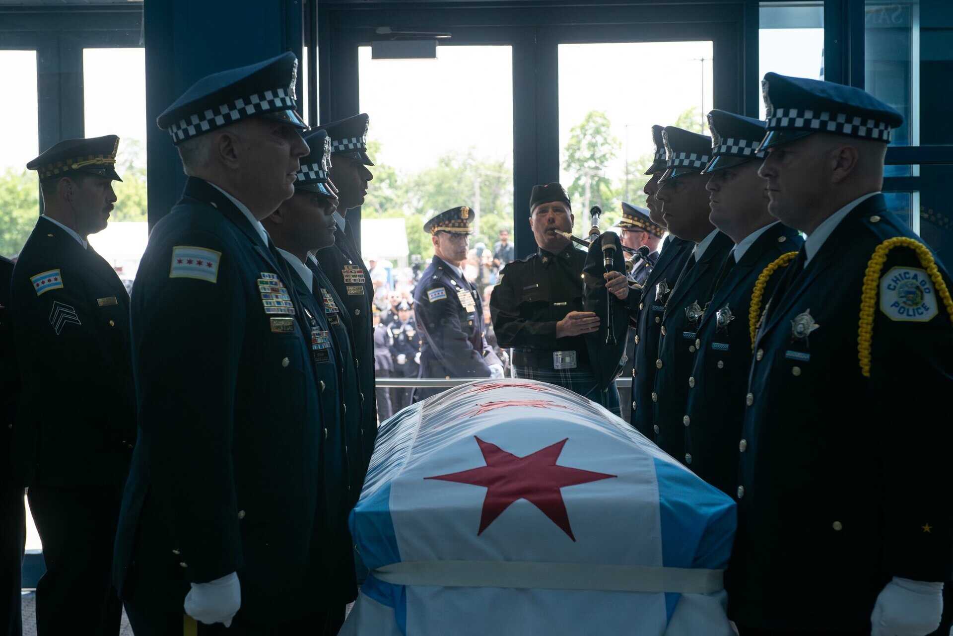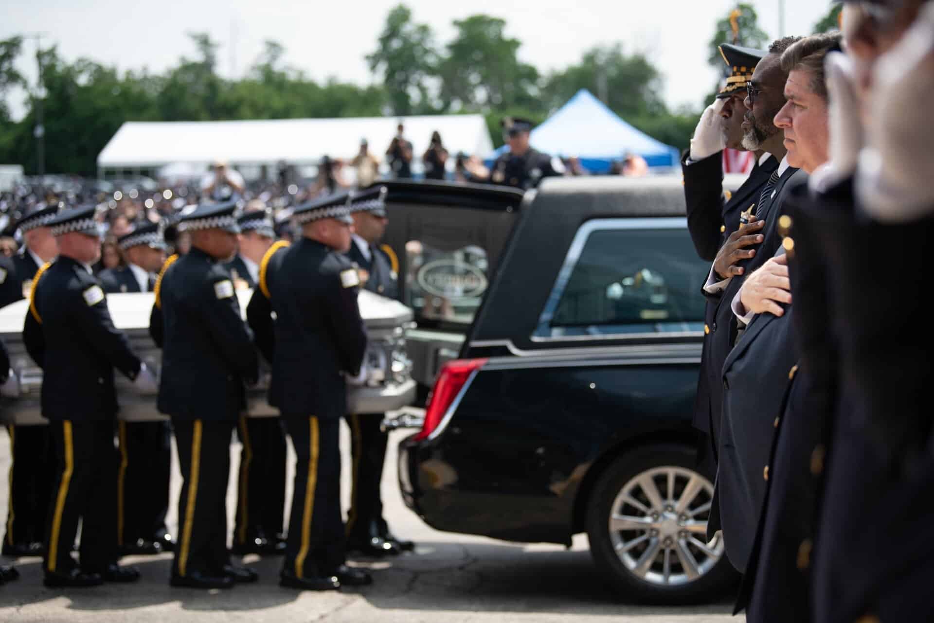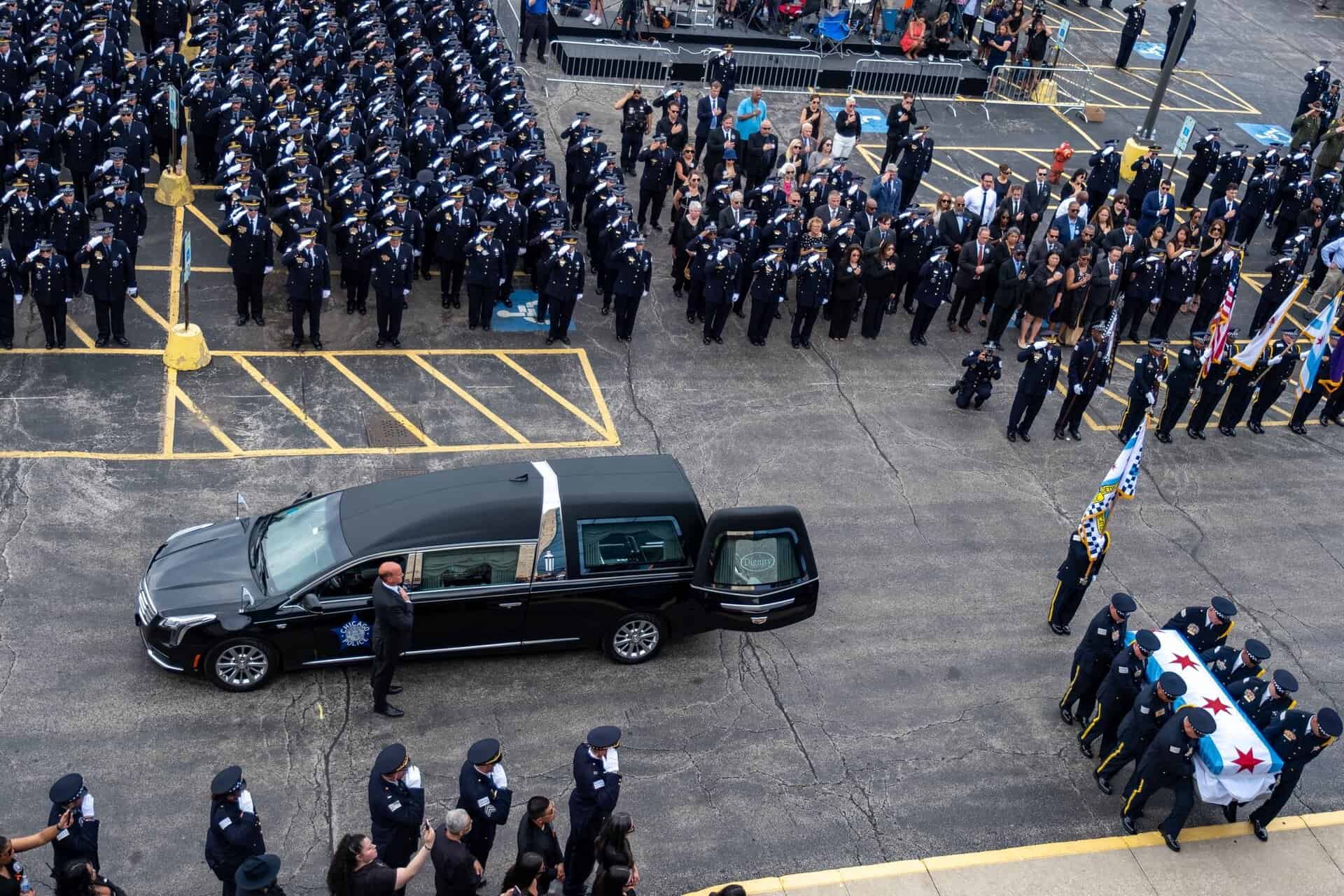 Uroczystości pogrzebowe Krystal Rivery, policjantki z Chicago, która zginęła na służbie. 25 czerwca