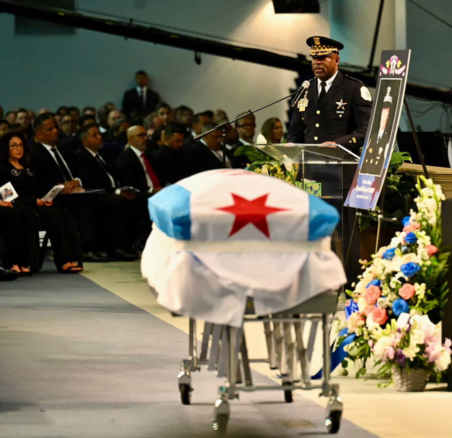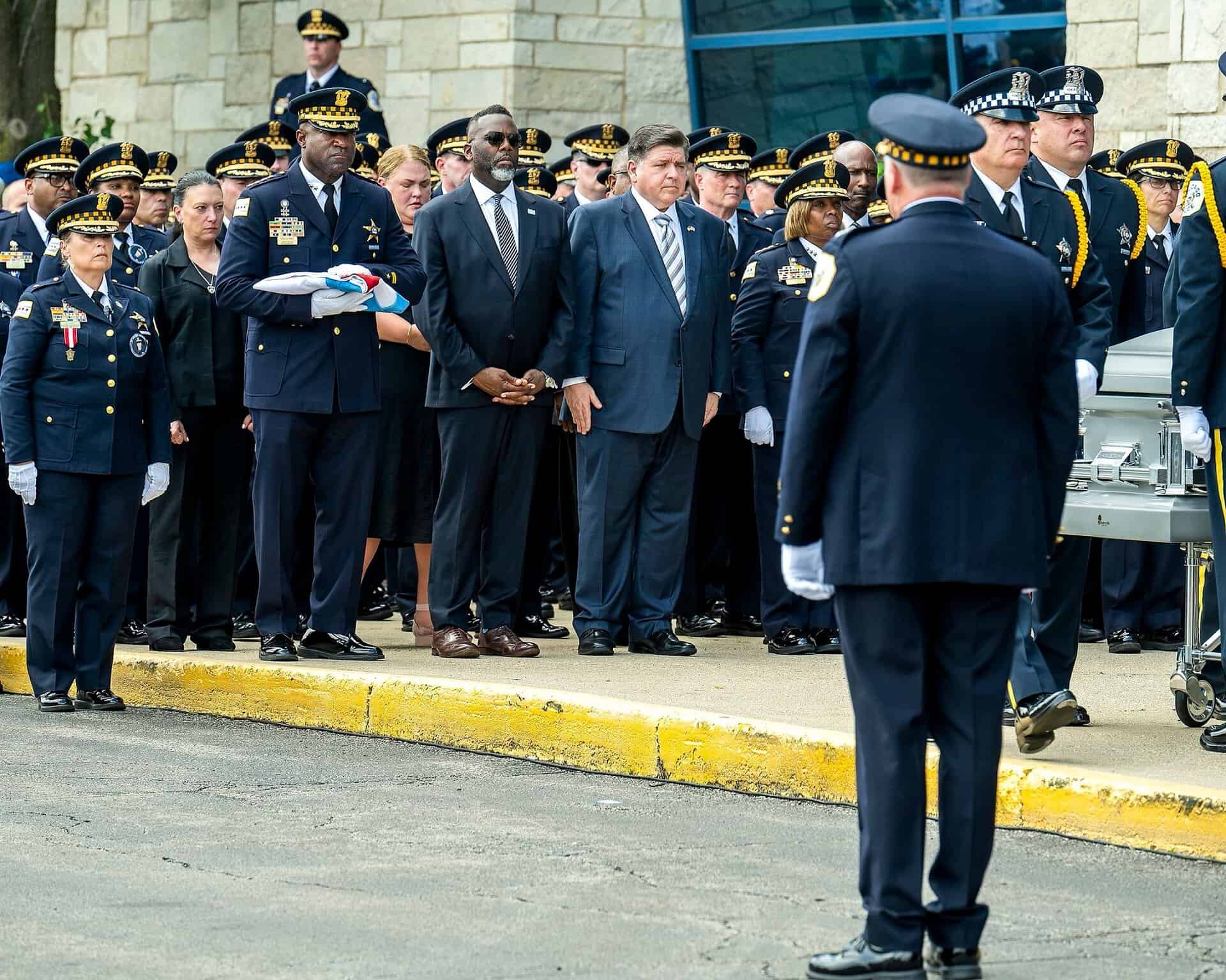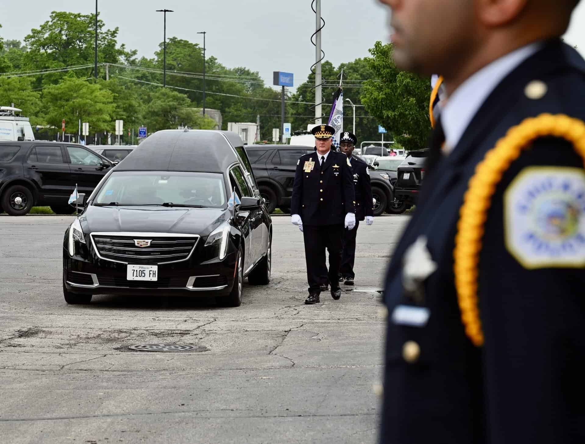 Uroczystości pogrzebowe Krystal Rivery, policjantki z Chicago, która zginęła na służbie. 25 czerwca