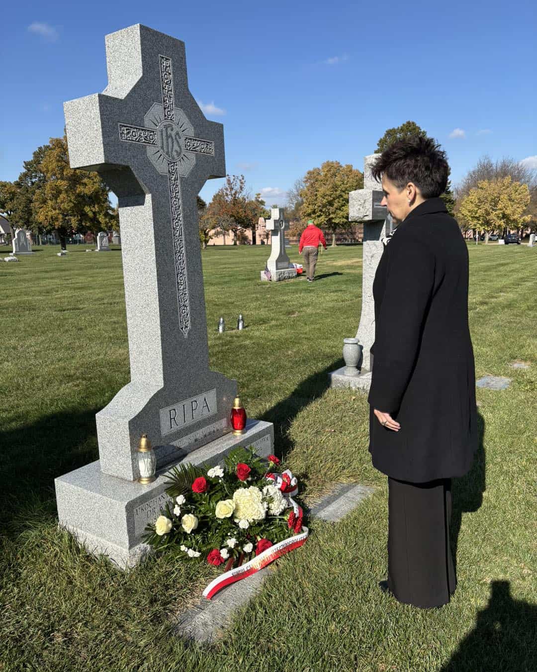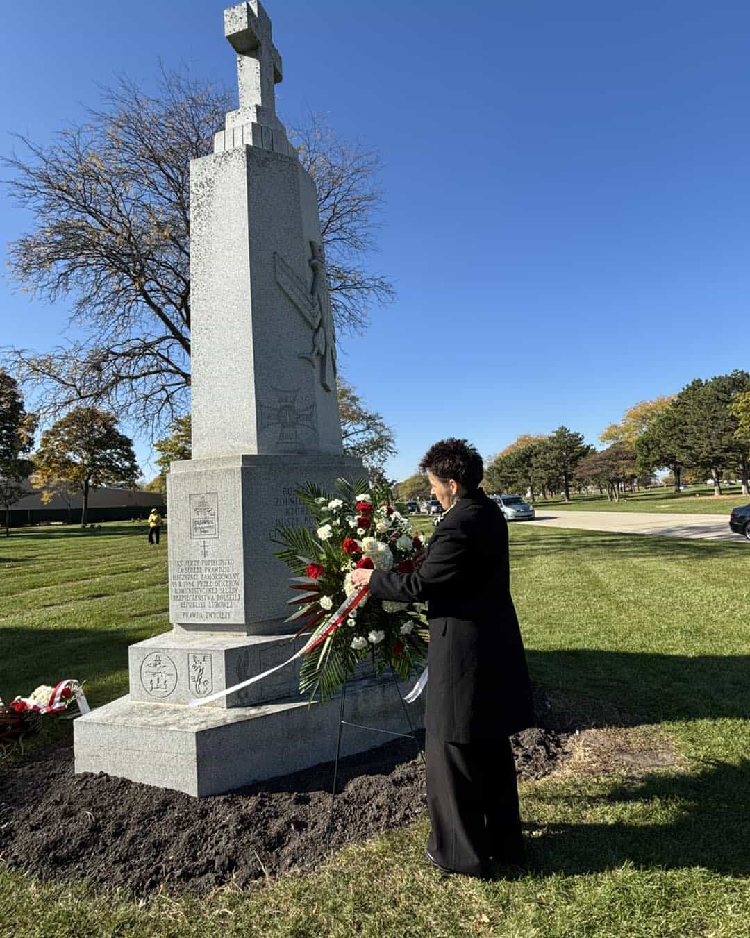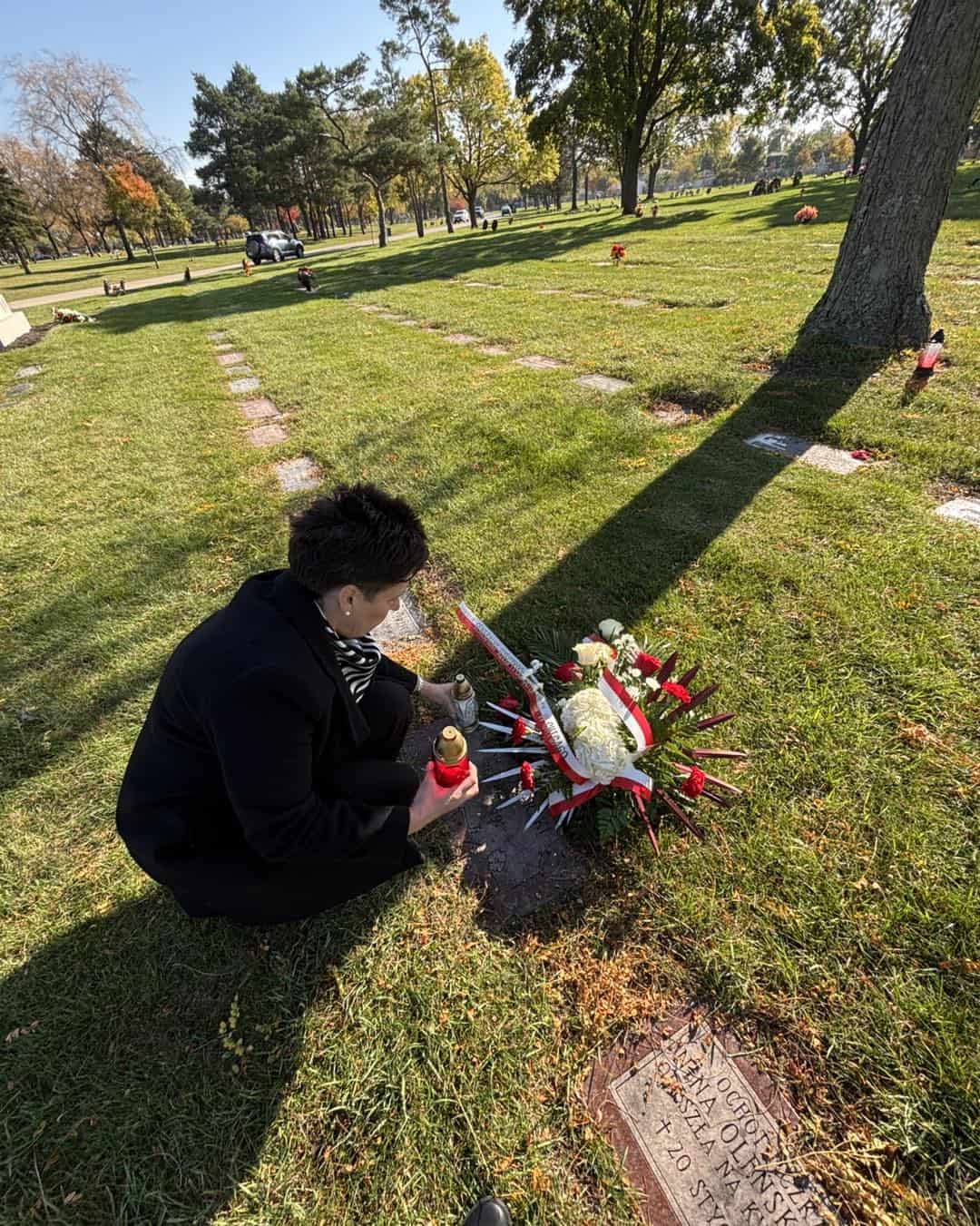 Konsul Generalna RP w Chicago Regina Jurkowska złożyła kwiaty i znicze na cmentarzach w Justice i Niles z okazji Wszystkich Świętych