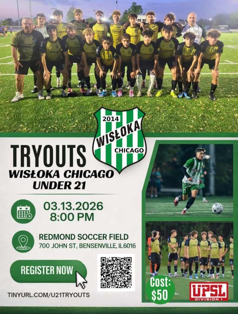 Polonijny klub piłkarski ogłasza nabór uzupełniający do drużyny Wisłoka Chicago U21. Poszukiwani są utalentowani zawodnicy, którzy chcą reprezentować Wisłokę w rozgrywkach UPSL Division 1. Więcej informacji można uzyskać pisząc na adres mailowy: kswislokachicago@gmail.com